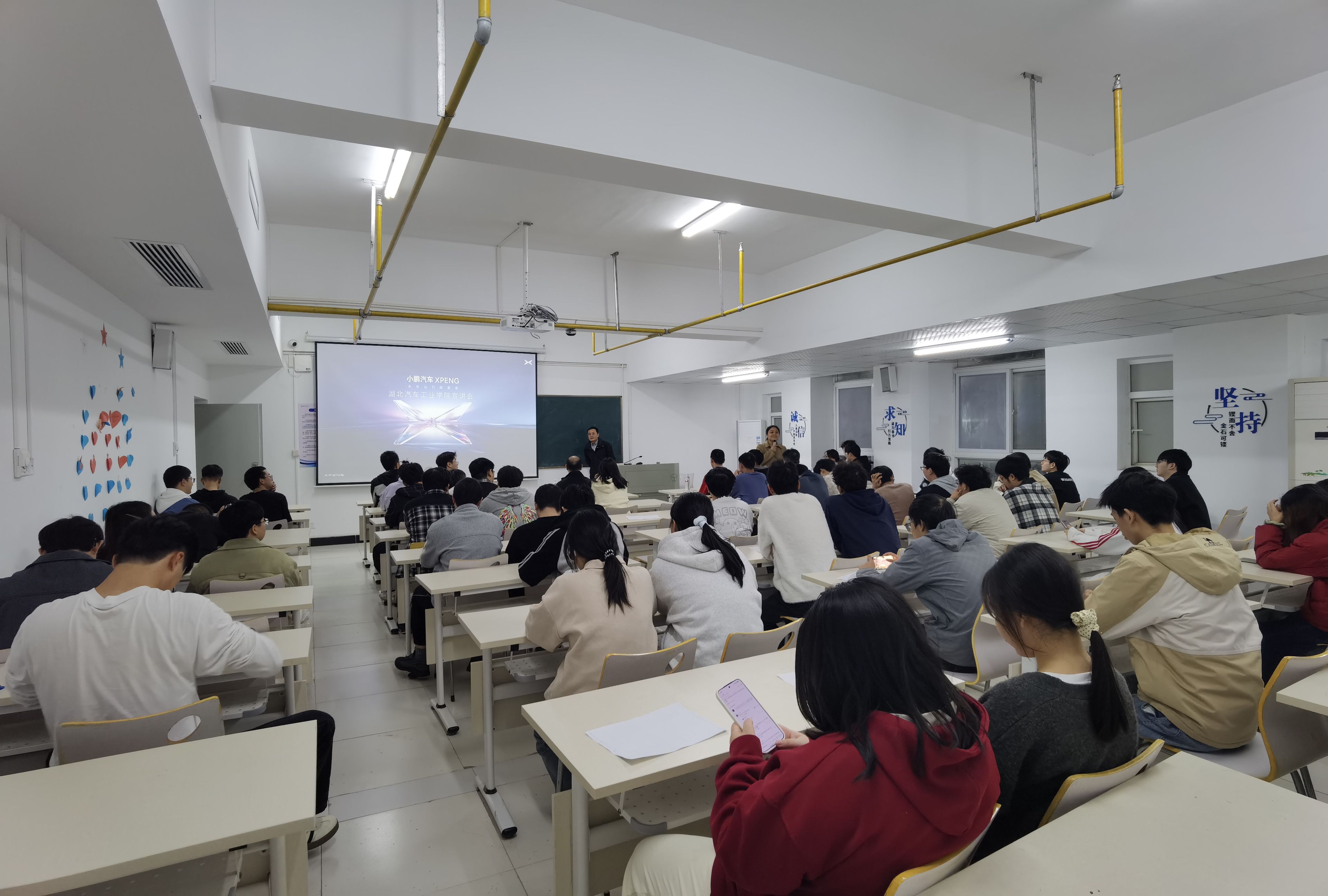 宣讲会上,王剑经理一行出席活动,向在场学子介绍了小鹏汽车的发展历程、AI技术布局与飞行汽车等创新成果,并分享了公司的企业文化、工作环境及员工福利。