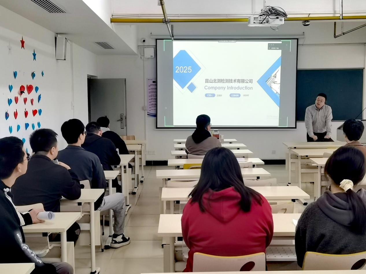 (文 赵娜 /图 薛建云)11月17日,昆山北测检测有限公司技术总监、校友张武受邀返回我校,开展主题宣讲与职业规划交流活动。活动由基地党委副书记、副主任薛建云主持。