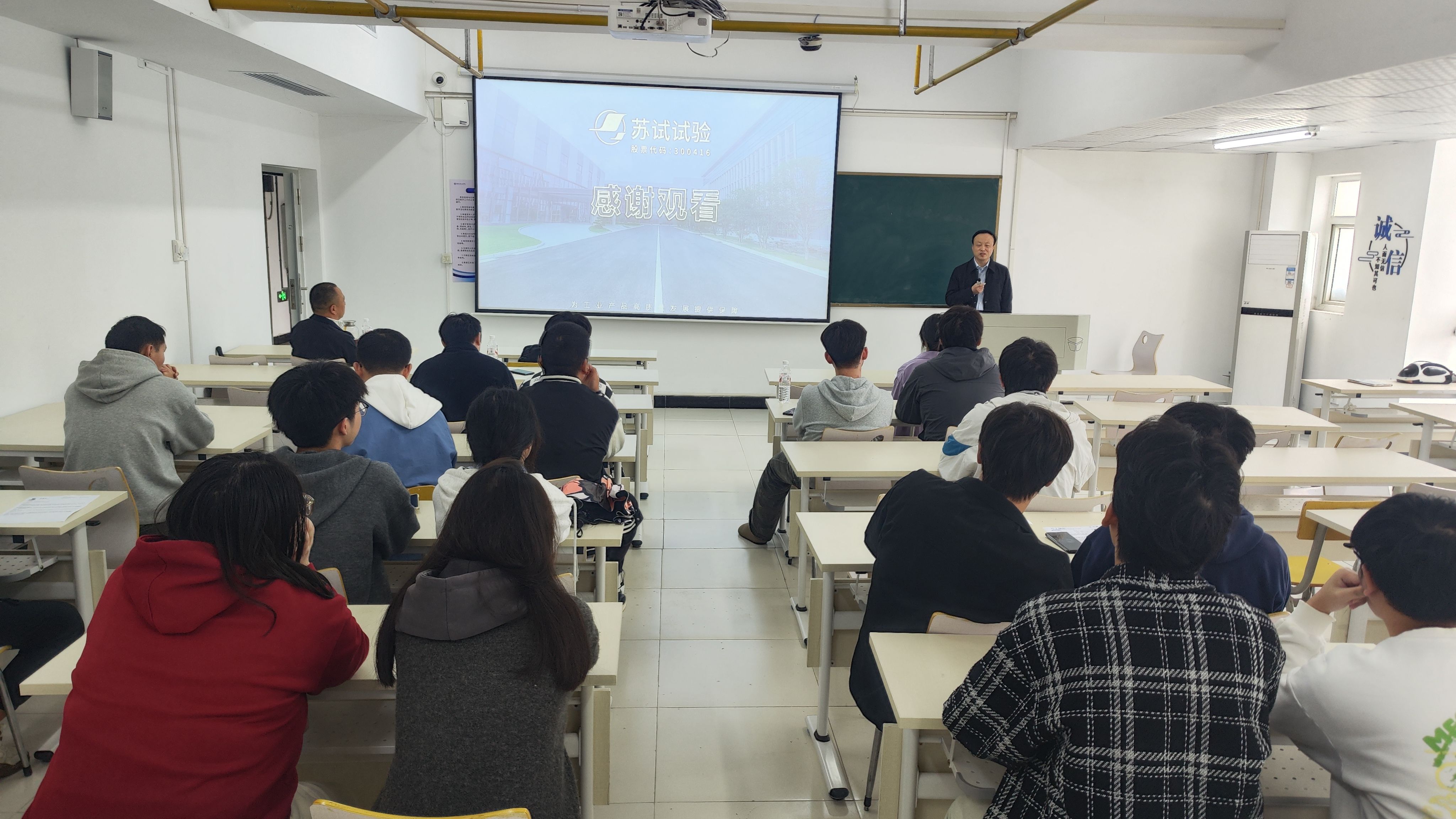 随后,苏试试验集团招聘代表系统介绍了企业的发展历程、核心文化、技术优势及行业前景,详细解读了产品迭代与创新能力,帮助同学们全面了解企业实力与个人发展空间。